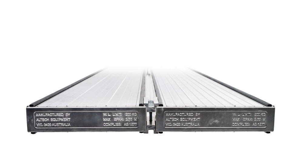 Two Altech Twin-Plank Clamps along with two Supasafe Planks form a 450mm wide work platform with a 200kg Working Load Limit, enabling a maximum span of 4.75 metres. This conforms to Australian Standard AS 6001-1999.